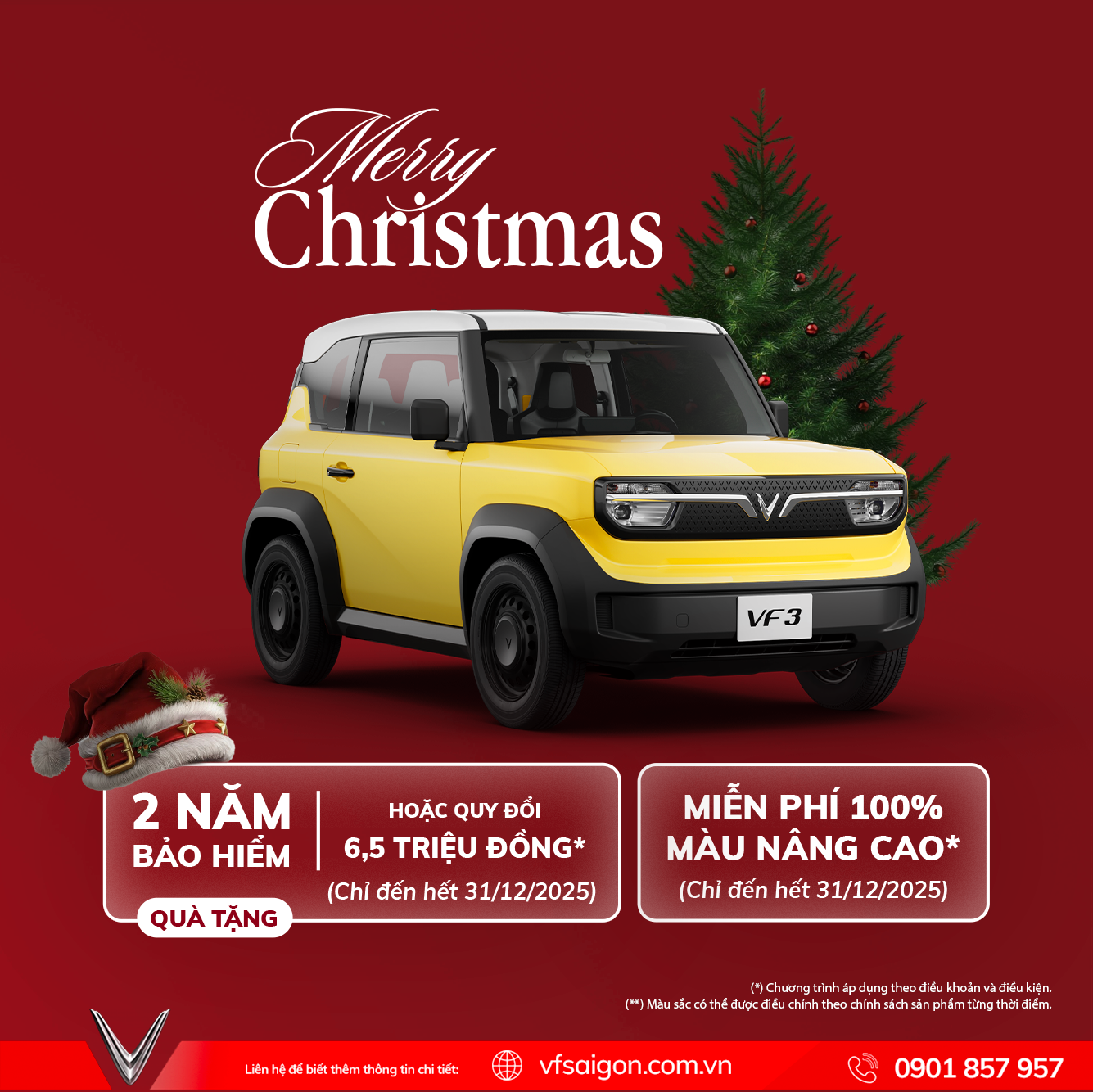 Trong thời gian từ 01/12/2025 đến 31/01/2026, khách hàng mua xe tại VinFast VF Sài Gòn sẽ nhận ngay ưu đãi hấp dẫÁp dụng cho VinFast VF 3, VF 5 và VF 6: